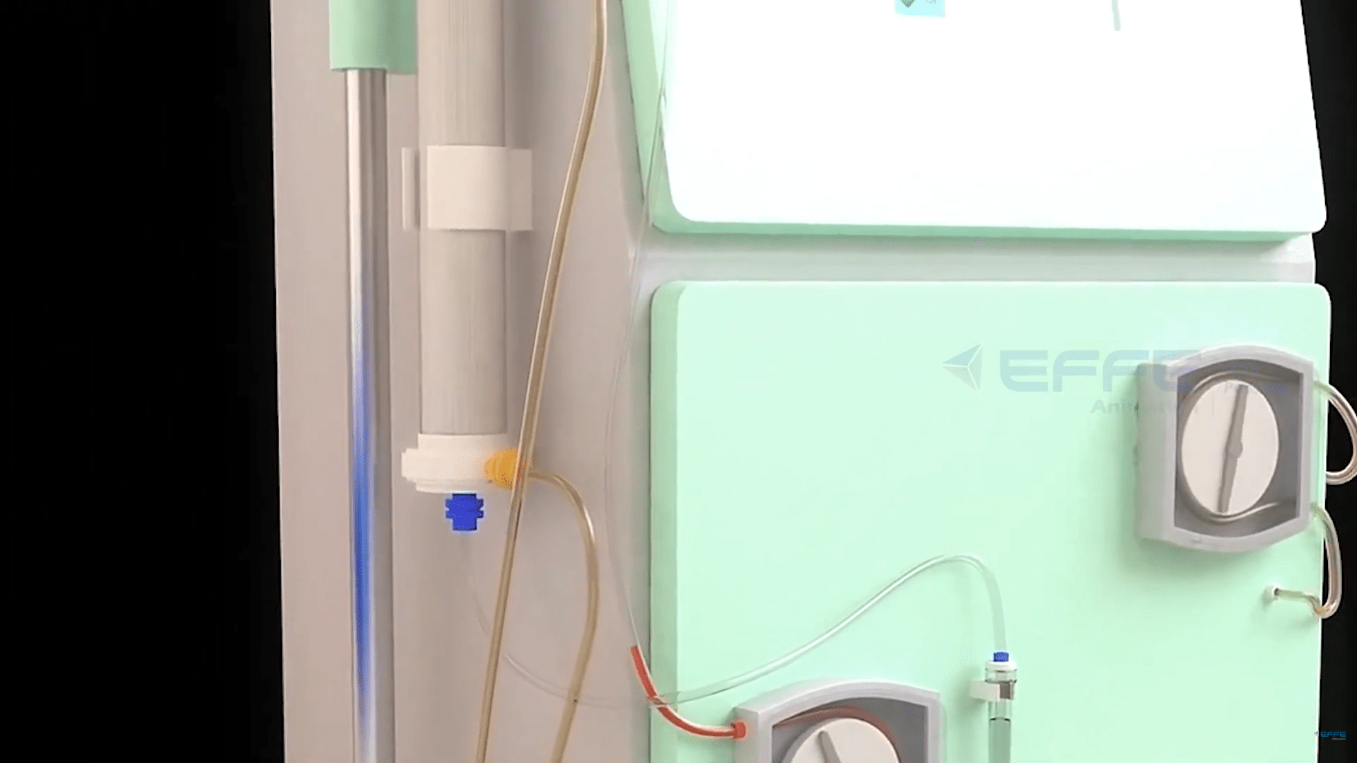 EFFE Animation developed a comprehensive medical devices animation showcasing the working of renal support devices, with a focus on the hemodialysis machine. The animation demonstrated how blood is drawn from the patient, filtered through a dialyzer to remove waste and excess fluids, and returned to the body.